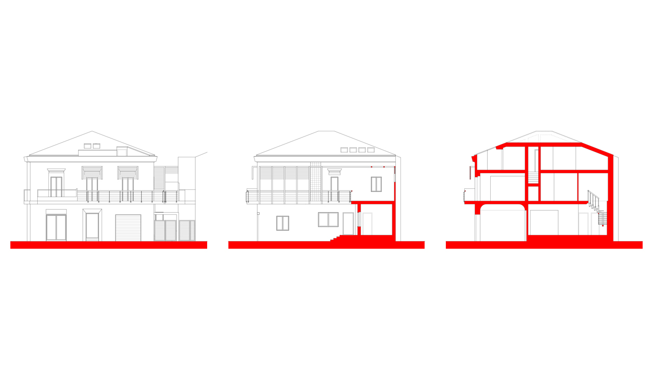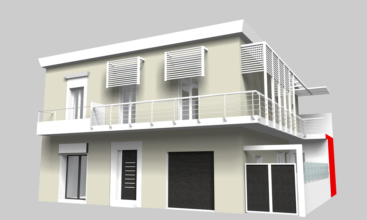 Riqualificazione dei prospetti di un fabbricato unifamiliare sito in Pescara, con intervento di variazione distributiva degli spazi interni e recupero ai fini abitativi del piano sottotetto.