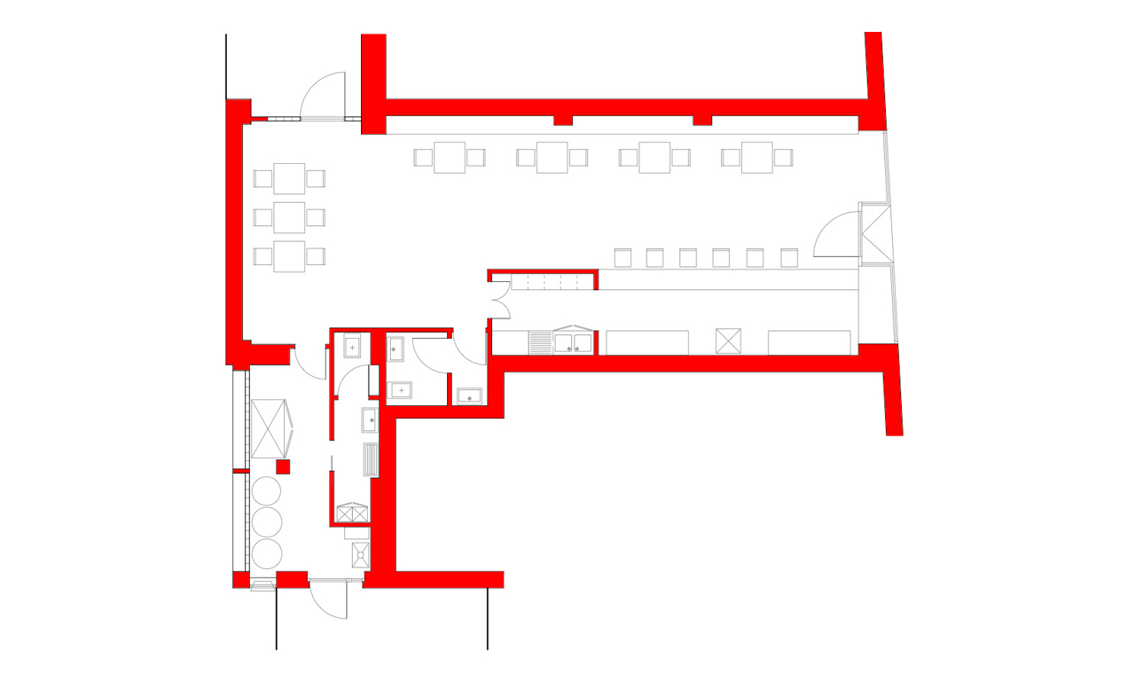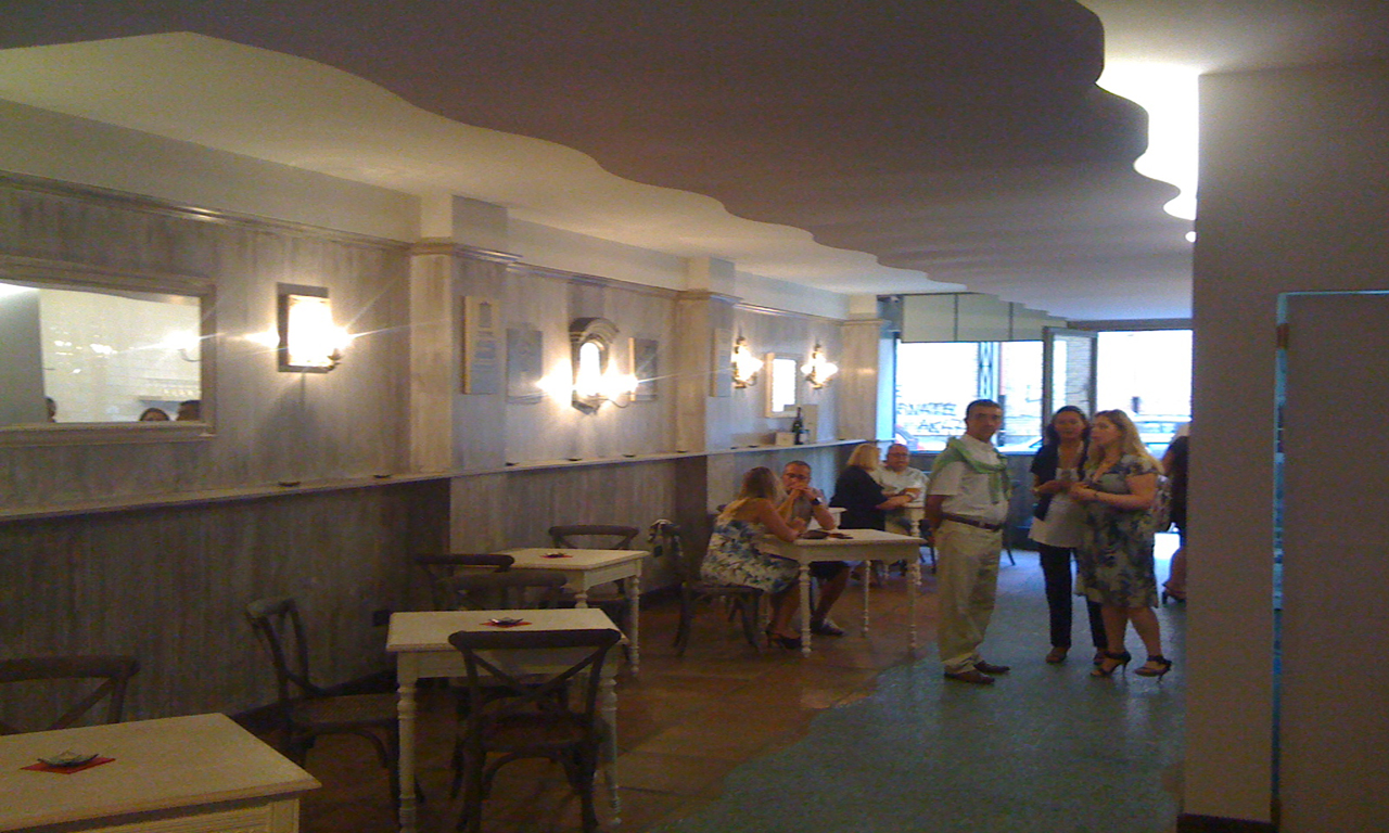 Il progetto per la cantina “Lacquabuona” prende spunto dalla tradizione delle cantine degli anni ’60-’70 che nascevano nel centro della città di Pescara come prima forma di intrattenimento. Il progetto, il primo a Pescara a superare i nuovi parametri urbanistico-sanitari necessari per l’ottenimento delle licenze alla somministrazione, vede l’utilizzo di materiali diversi, dai rivestimenti in piastrelle bianche nell’area preparazione alle boiserie in legno nell’area destinata ai clienti; un piano in legno massello su piedi a croce divide fisicamente l’area di lavoro da quella di somministrazione, ma la sua trasparenza verticale non interrompe l’armoniosa continuità degli spazi. La boiserie è pensata per essere modificata nel breve tempo, con estrema facilità, a seconda delle diverse necessità del gestore; inoltre l’aspetto neutro della stessa è dovuto al fatto che la boisierie è progettata per accogliere opere di artisti locali, proprio per fornire al locale la vocazione di “cantina d’arte contemporanea”.