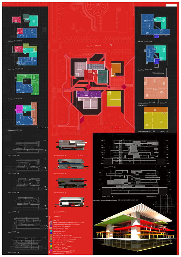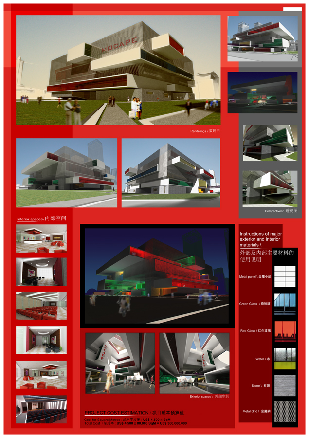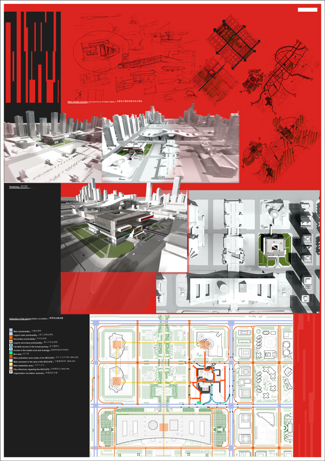 Progetto per il Concorso Internazionale di Design "MOCAPE" per la realizzazione della sede del "Museum of Contemporary Art & Planning Exhibitions" in Shenzhen (China).